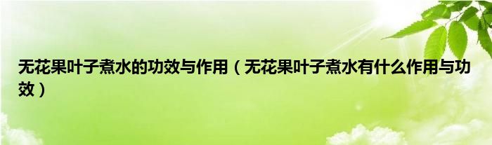 大家好,小科来为大家解答以上问题。无花果叶子煮水的功效与作用,无花果叶子煮水有什么作用与功效很多人还不知道,现在让我们一起来看看吧!