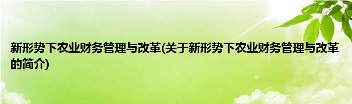 本文关于新形势下农业财务管理与改革的简介就讲解完毕,希望对大家有所帮助。