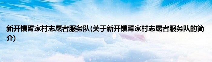 大家好,新开镇胥家村志愿者服务队,关于新开镇胥家村志愿者服务队的简介很多人还不知道,现在让我们一起来看看吧!
