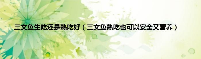 一、 三文鱼生吃熟吃看个人选择