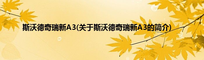 本文关于斯沃德奇瑞新A3的简介就讲解完毕,希望对大家有所帮助。