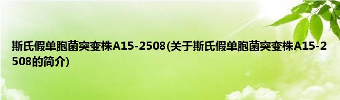 本文关于斯氏假单胞菌突变株A15-2508的简介就讲解完毕,希望对大家有所帮助。