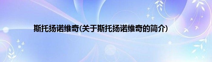 大家好,斯托扬诺维奇,关于斯托扬诺维奇的简介很多人还不知道,现在让我们一起来看看吧!