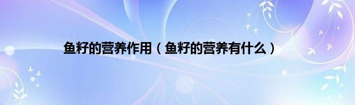 大家好,小科来为大家解答以上问题。鱼籽的营养作用,鱼籽的营养有什么很多人还不知道,现在让我们一起来看看吧!
