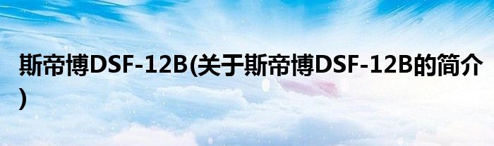 本文关于斯帝博DSF-12B的简介就讲解完毕,希望对大家有所帮助。