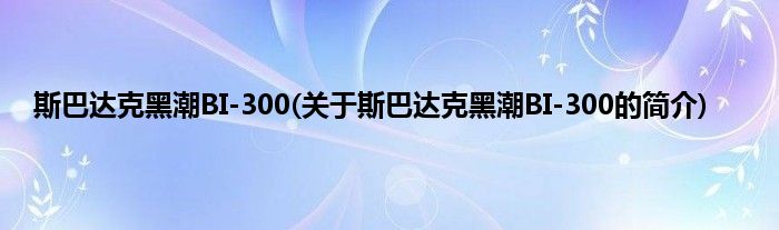 斯巴达克黑潮BI-300(关于斯巴达克黑潮BI-300的简介)