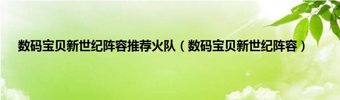 大家好,精选小编来为大家解答以上问题。数码宝贝新世纪阵容推荐火队,数码宝贝新世纪阵容很多人还不知道,现在让我们一起来看看吧!