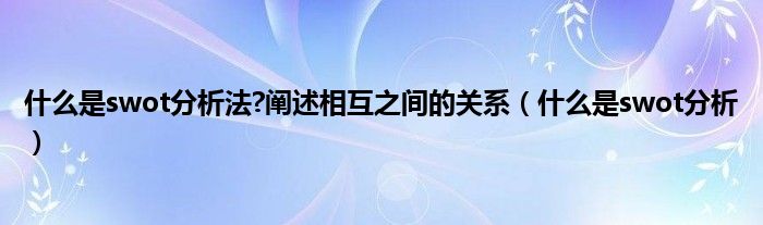 大家好,精选小编来为大家解答以上问题。什么是swot分析法?阐述相互之间的关系,什么是swot分析很多人还不知道,现在让我们一起来看看吧!