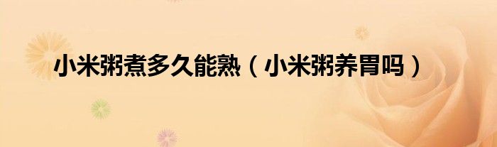 大家好,小科来为大家解答以上问题。小米粥煮多久能熟,小米粥养胃吗很多人还不知道,现在让我们一起来看看吧!