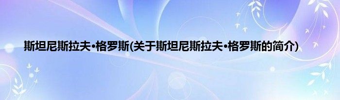 大家好,斯坦尼斯拉夫·格罗斯,关于斯坦尼斯拉夫·格罗斯的简介很多人还不知道,现在让我们一起来看看吧!