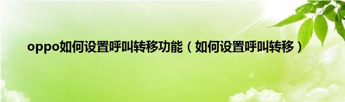 oppo如何设置呼叫转移功能(如何设置呼叫转移)