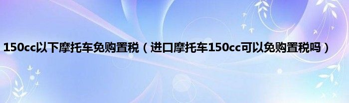 大家好,小常来为大家解答以上问题。150cc以下摩托车免购置税,进口摩托车150cc可以免购置税吗很多人还不知道,现在让我们一起来看看吧!