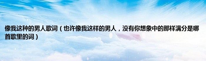 大家好,小常来为大家解答以上问题。像我这种的男人歌词,也许像我这样的男人,没有你想象中的那样满分是哪首歌里的词很多人还不知道,现在让我们一起来看看吧!