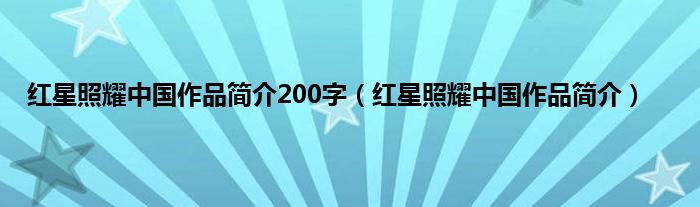 大家好,小常来为大家解答以上问题。红星照耀中国作品简介200字,红星照耀中国作品简介很多人还不知道,现在让我们一起来看看吧!