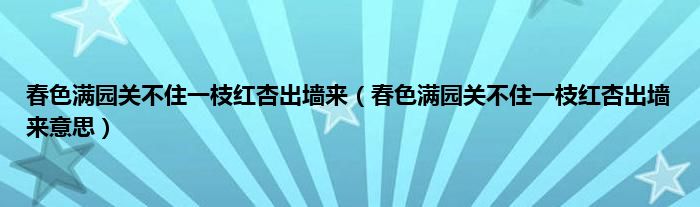 1、意思:可是这满园的春色毕竟是关不住的,你看,那儿有一枝粉红色的杏花伸出墙头来。