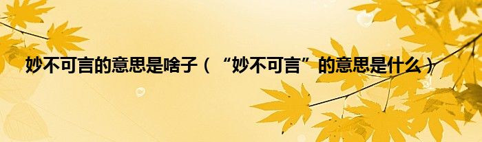 大家好,小常来为大家解答以上问题。妙不可言的意思是啥子,“妙不可言”的意思是什么很多人还不知道,现在让我们一起来看看吧!