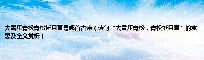 大家好,小常来为大家解答以上问题。大雪压青松青松挺且直是哪首古诗,诗句“大雪压青松,青松挺且直”的意思及全文赏析很多人还不知道,现在让我们一起来看看吧!