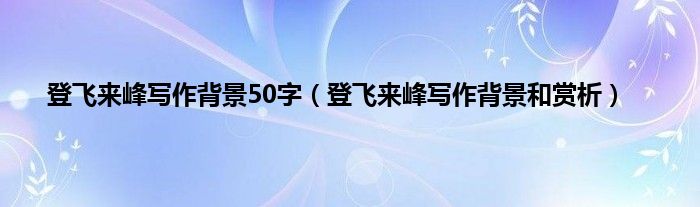 大家好,小常来为大家解答以上问题。登飞来峰写作背景50字,登飞来峰写作背景和赏析很多人还不知道,现在让我们一起来看看吧!