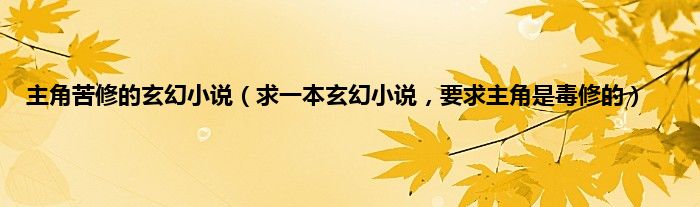 大家好,小常来为大家解答以上问题。主角苦修的玄幻小说,求一本玄幻小说,要求主角是毒修的很多人还不知道,现在让我们一起来看看吧!