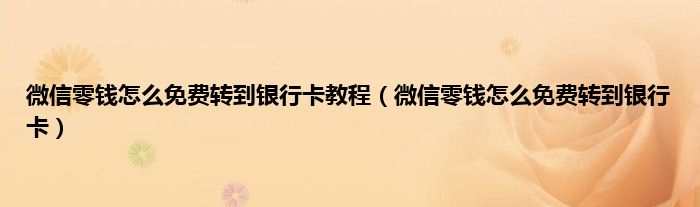 大家好,小常来为大家解答以上问题。微信零钱怎么免费转到银行卡教程,微信零钱怎么免费转到银行卡很多人还不知道,现在让我们一起来看看吧!