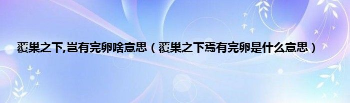 大家好,小常来为大家解答以上问题。覆巢之下,岂有完卵啥意思,覆巢之下焉有完卵是什么意思很多人还不知道,现在让我们一起来看看吧!