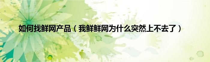 大家好,小常来为大家解答以上问题。如何找鲜网产品,我鲜鲜网为什么突然上不去了很多人还不知道,现在让我们一起来看看吧!