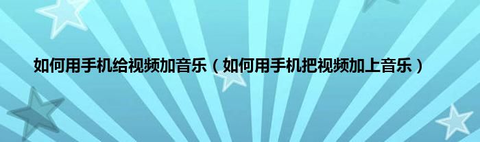 大家好,小常来为大家解答以上问题。如何用手机给视频加音乐,如何用手机把视频加上音乐很多人还不知道,现在让我们一起来看看吧!