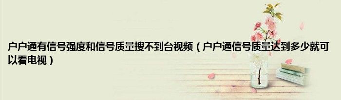 大家好,小常来为大家解答以上问题。户户通有信号强度和信号质量搜不到台视频,户户通信号质量达到多少就可以看电视很多人还不知道,现在让我们一起来看看吧!