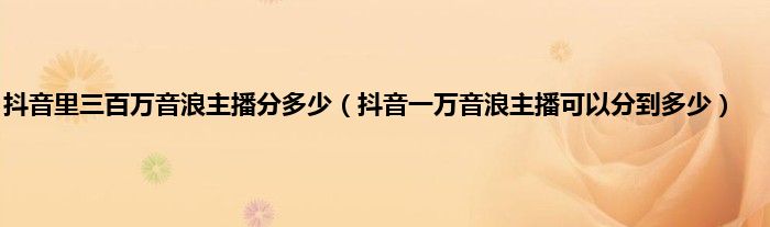大家好,小常来为大家解答以上问题。抖音里三百万音浪主播分多少,抖音一万音浪主播可以分到多少很多人还不知道,现在让我们一起来看看吧!