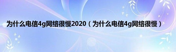 大家好,小常来为大家解答以上问题。为什么电信4g网络很慢2020,为什么电信4g网络很慢很多人还不知道,现在让我们一起来看看吧!