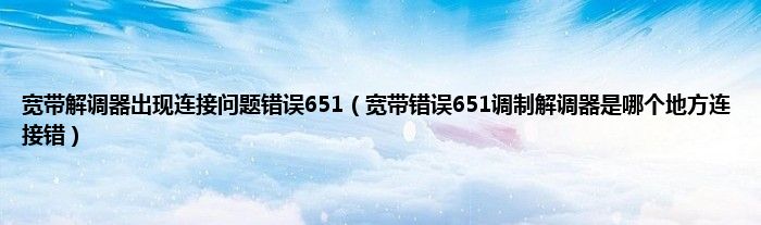 大家好,小常来为大家解答以上问题。宽带解调器出现连接问题错误651,宽带错误651调制解调器是哪个地方连接错很多人还不知道,现在让我们一起来看看吧!