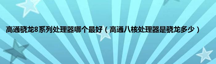高通骁龙8系列处理器哪个最好(高通八核处理器是骁龙多少)