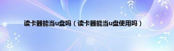 大家好,小常来为大家解答以上问题。读卡器能当u盘吗,读卡器能当u盘使用吗很多人还不知道,现在让我们一起来看看吧!