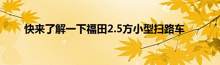 整体来看,福田2.5方小型扫路车小巧精致,配置优、动力强、功能齐全,清扫更干净,是一款使用价值非常高的车辆。
