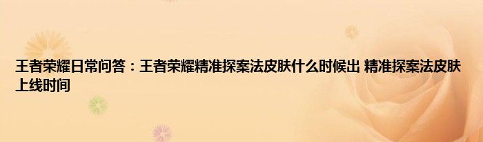 问:王者荣耀精准探案法皮肤什么时候出?