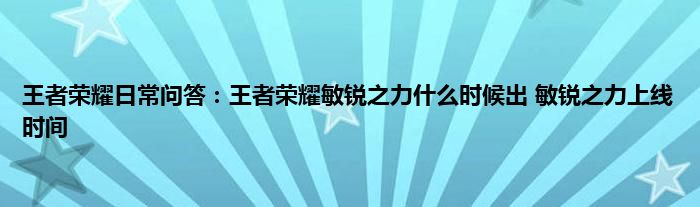 问:王者荣耀敏锐之力什么时候出呢?