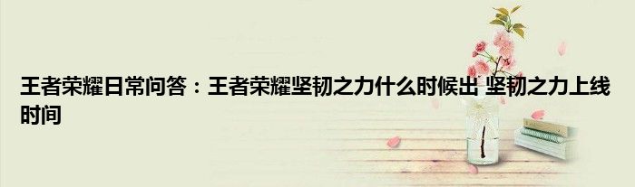 小编今天给各位玩家朋友们带来的是王者荣耀日常问答:王者荣耀坚韧之力什么时候出,坚韧之力上线时间,有记得的玩家朋友吗?不记得也没有关系,小编已经帮助大家把王者荣耀日常问答:王者荣耀坚韧之力什么时候出,坚韧之力上线时间找了出来,你只需要动动你的小手就可以轻松知道啦,快来瞧一瞧吧。