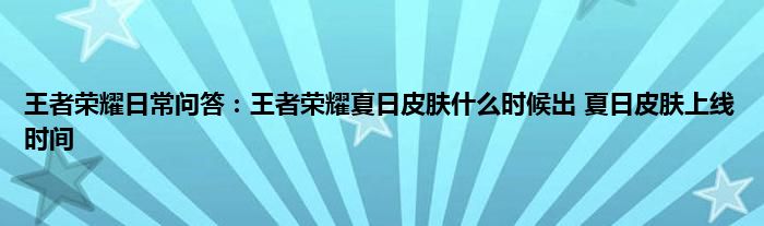 以上就是王者荣耀日常问答:王者荣耀夏日皮肤什么时候出,夏日皮肤上线时间的推荐,相信通过王者荣耀日常问答:王者荣耀夏日皮肤什么时候出,夏日皮肤上线时间这篇文章能帮到你,也欢迎对游戏很感兴趣小伙伴们一起来探讨。