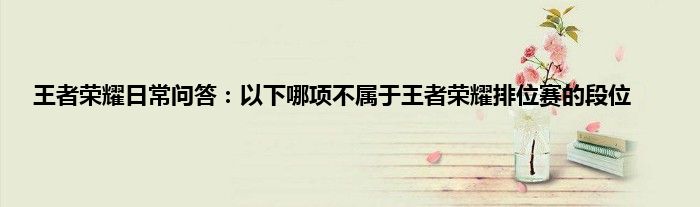 今天来聊聊关于王者荣耀日常问答:以下哪项不属于王者荣耀排位赛的段位的文章,游戏是很多人的选择,但是游戏玩多了也会身心疲惫,现在就为大家来简单介绍下王者荣耀日常问答:以下哪项不属于王者荣耀排位赛的段位,希望对各位小伙伴们有所帮助。