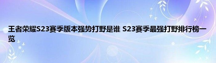 王者荣耀S23赛季已经于4月8日更新完毕,其中对英雄和装备进行了改动,很多玩家现在摸不清版本强势打野是谁,版本强势打野能帮助玩家在新赛季中快速上分,因此很多玩家想知道王者荣耀S23赛季最强打野是谁?蚕豆小编为您带来王者荣耀S23赛季最强打野排行榜一览。