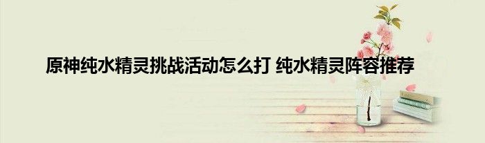 原神纯水精灵挑战活动