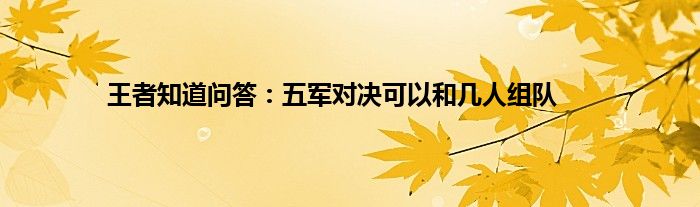 以上就是王者知道问答:五军对决可以和几人组队的推荐,相信通过王者知道问答:五军对决可以和几人组队这篇文章能帮到你,也欢迎对游戏很感兴趣小伙伴们一起来探讨。