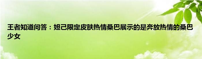 今天来聊聊关于王者知道问答:妲己限定皮肤热情桑巴展示的是奔放热情的桑巴少女的文章,游戏是很多人的选择,但是游戏玩多了也会身心疲惫,现在就为大家来简单介绍下王者知道问答:妲己限定皮肤热情桑巴展示的是奔放热情的桑巴少女,希望对各位小伙伴们有所帮助。