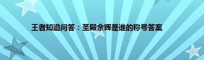 以上就是王者知道问答:圣殿余晖是谁的称号答案的推荐,相信通过王者知道问答:圣殿余晖是谁的称号答案这篇文章能帮到你,也欢迎对游戏很感兴趣小伙伴们一起来探讨。