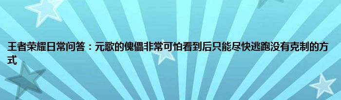 今天来聊聊关于王者荣耀日常问答:元歌的傀儡非常可怕,看到后只能尽快逃跑,没有克制的方式的文章,游戏是很多人的选择,但是游戏玩多了也会身心疲惫,现在就为大家来简单介绍下王者荣耀日常问答:元歌的傀儡非常可怕,看到后只能尽快逃跑,没有克制的方式,希望对各位小伙伴们有所帮助。