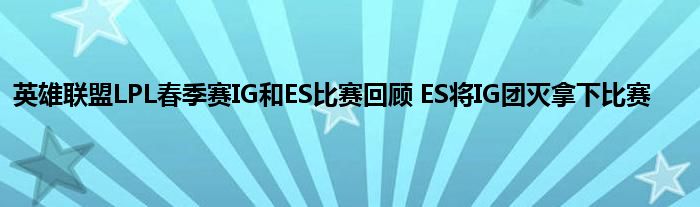 以上就是英雄联盟LPL春季赛IG和ES比赛回顾 ES将IG团灭拿下比赛的推荐,相信通过英雄联盟LPL春季赛IG和ES比赛回顾 ES将IG团灭拿下比赛这篇文章能帮到你,也欢迎对游戏很感兴趣小伙伴们一起来探讨。
