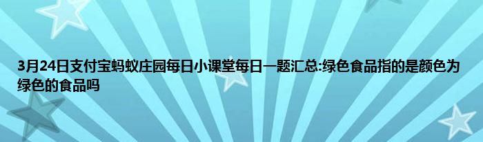 关于支付宝蚂蚁庄园3月24日每日小课堂汇总:绿色食品指的是颜色为绿色的食品吗,相信现在玩蚂蚁庄园的人都很想知道今天这个问题的答应吧,那现在小编就给大家说说支付宝蚂蚁庄园3月24日每日小课堂汇总:绿色食品指的是颜色为绿色的食品吗,希望小编说的会给大家带来帮助。