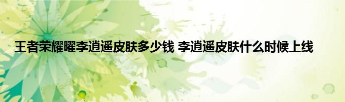 王者荣耀曜李逍遥皮肤什么时候出?