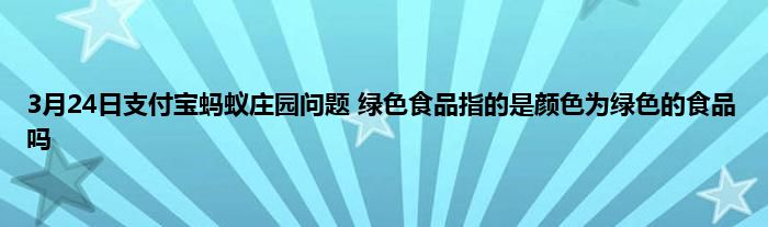 今天来聊聊关于3月24日支付宝蚂蚁庄园问题 绿色食品指的是颜色为绿色的食品吗的文章,游戏是很多人的选择,但是游戏玩多了也会身心疲惫,现在就为大家来简单介绍下3月24日支付宝蚂蚁庄园问题 绿色食品指的是颜色为绿色的食品吗,希望对各位小伙伴们有所帮助。