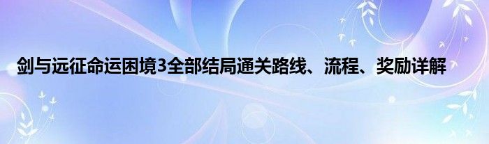 剑与远征游戏中,有很多的副本,其中命运困境3这个副本比较难,命运困境Ⅲ是国服奇境探险的第二十七个副本,一共有四个不同的结局打法。那么命运困境3怎么打?小编现在就跟未过图的玩家朋友介绍下具体的通关流程,希望对大家有所帮助。